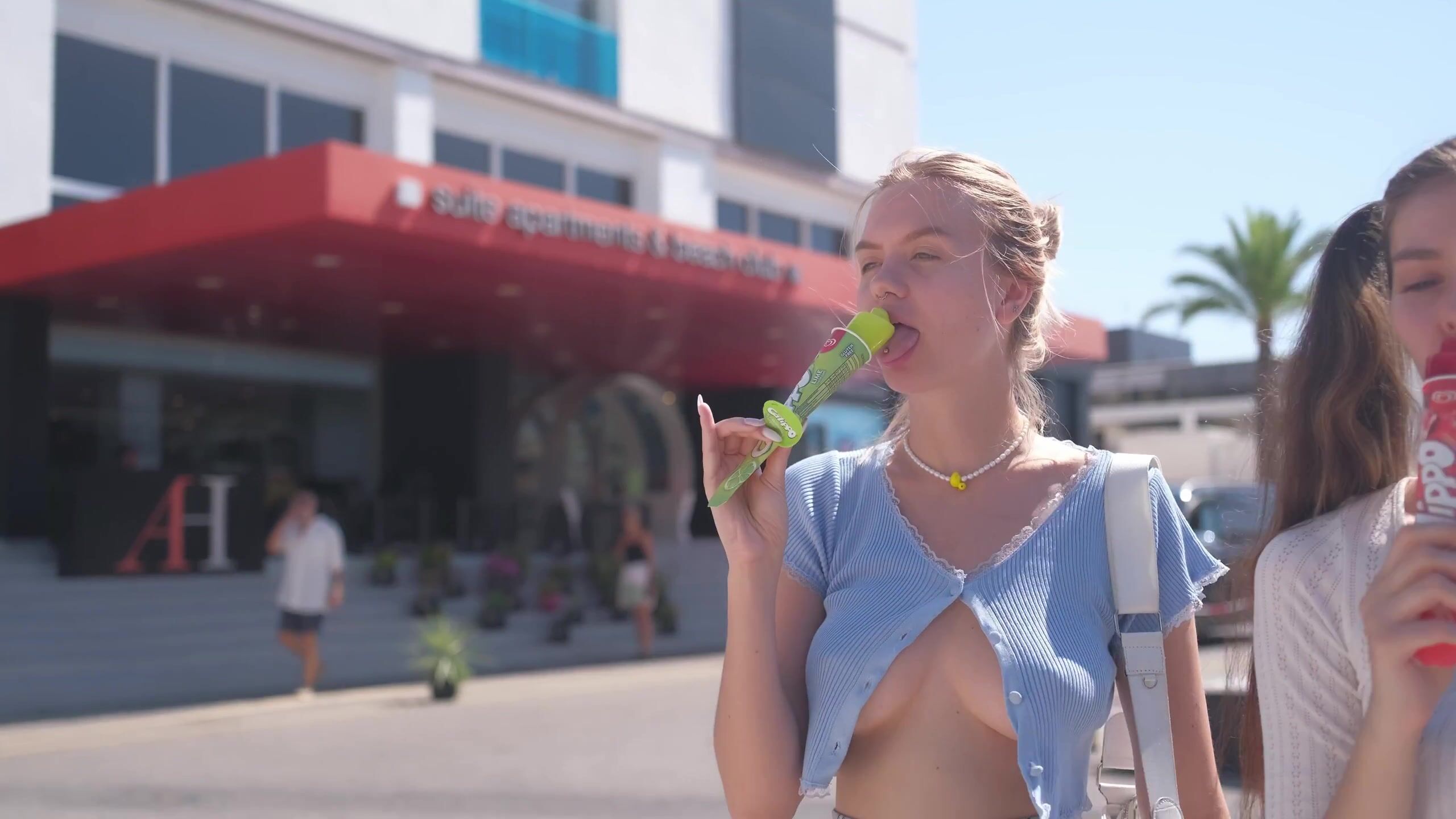 Bitchinbubba Two Cute Sluts Showing Tits in Busy Public Video