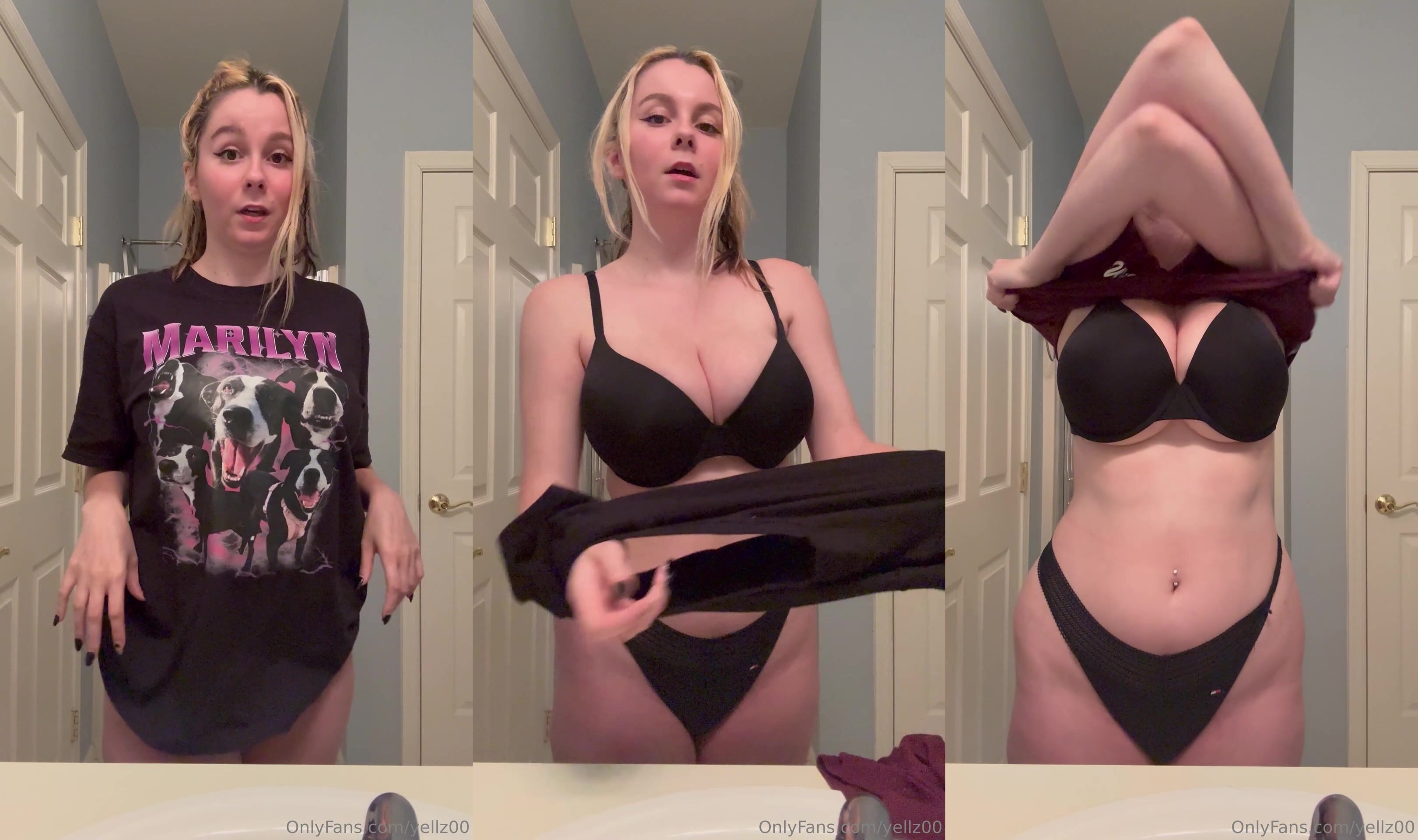 Blonde Yellz00 teases in black lingerie showing her curves and giving a sneak peek of her assets in this steamy video.