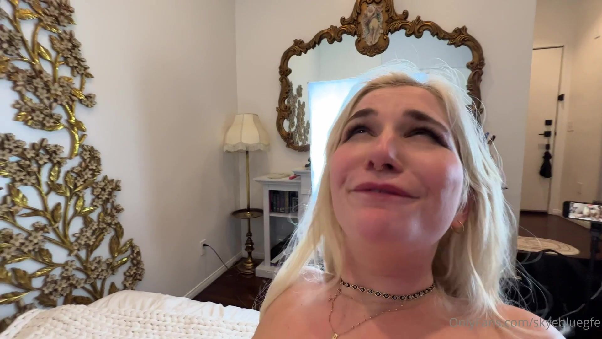 Description: Blonde bombshell SkyeBlue gets naughty in this intense threesome video. Watch her suck while getting pounded hard in a steamy bedroom session.