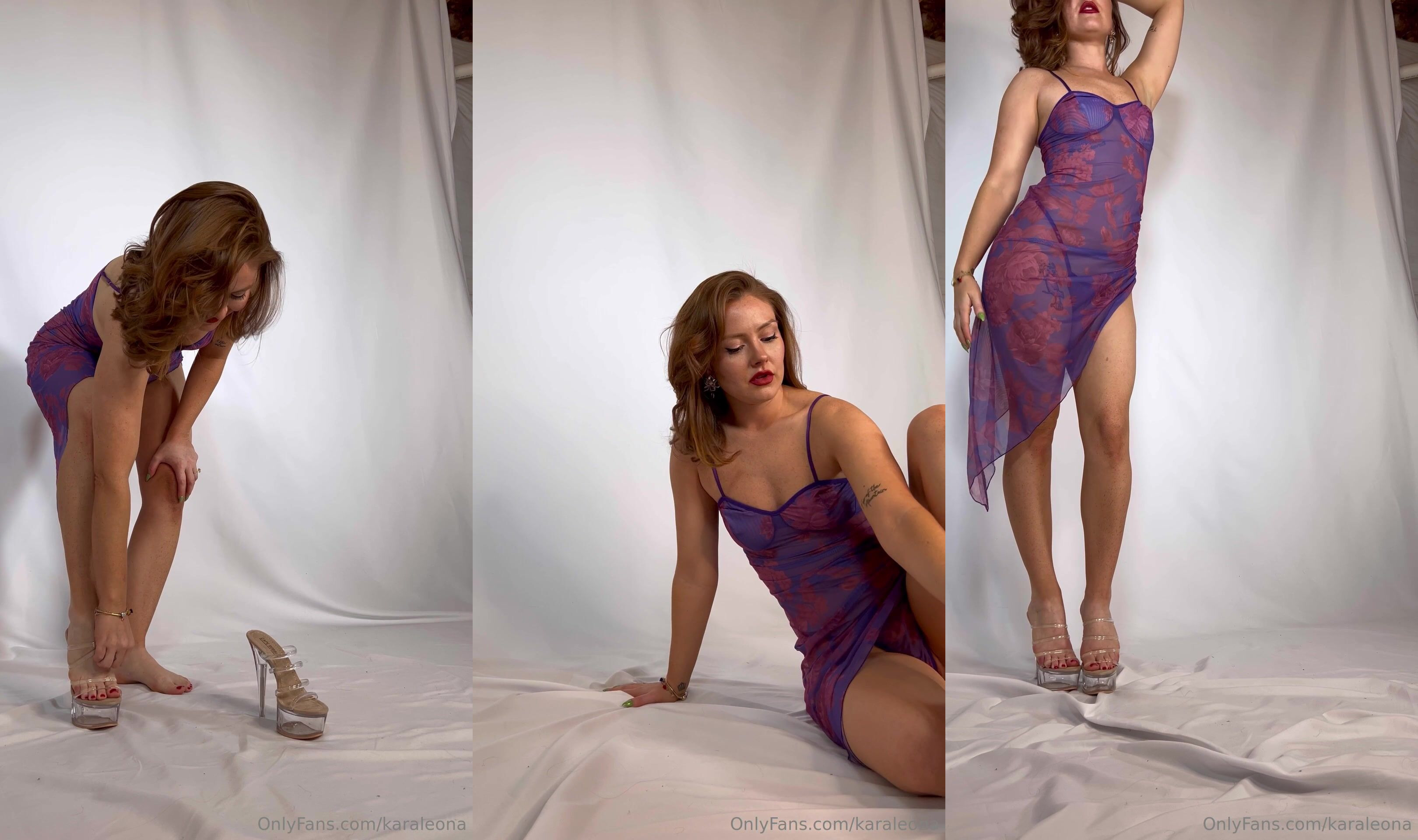 Karaleona teases in a sexy purple dress and heels in this seductive OnlyFans video
