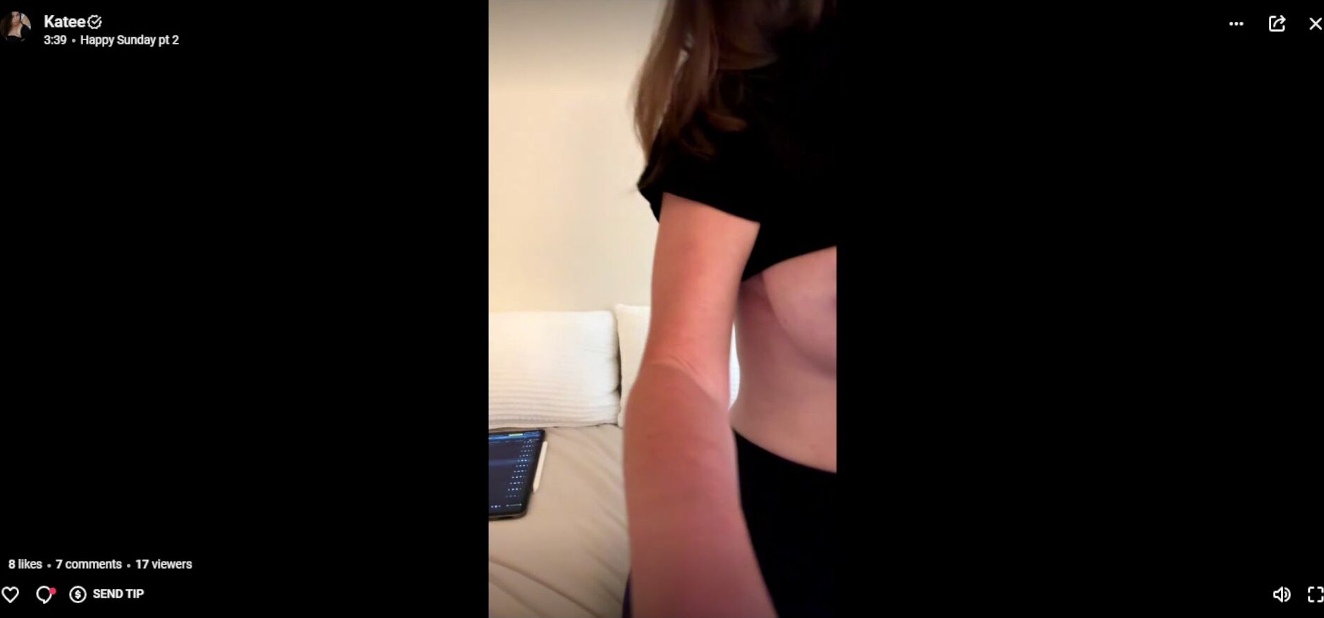 Description: Curvy goddess Katee teases her wet pussy in a tight black outfit while showing her big tits in this seductive video.