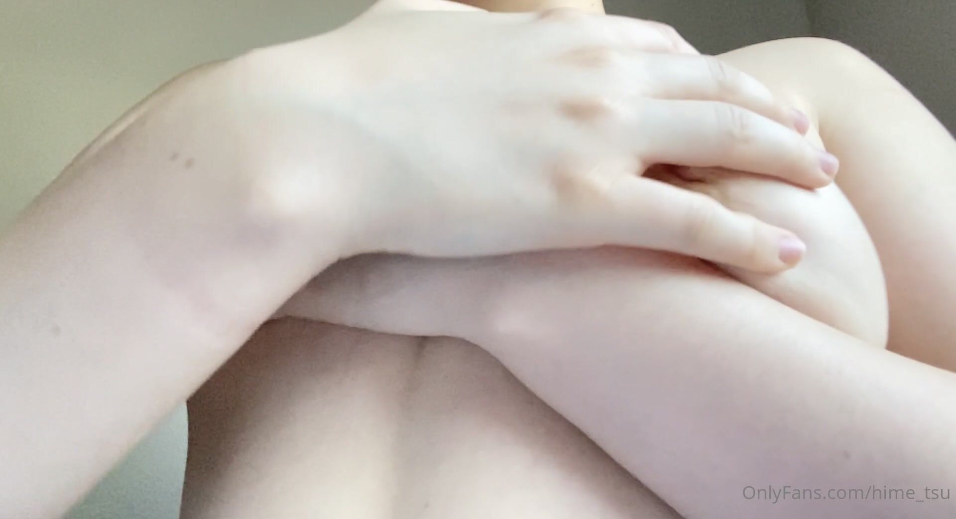 Hime_Tsu flaunts her huge tits and moist nipples in a steamy solo video giving you close up view of her massive melons and soft curves.