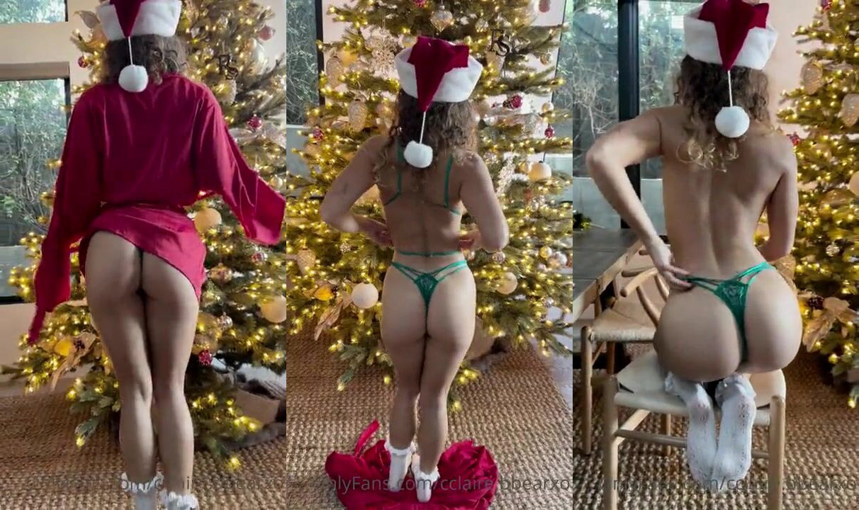 Curvy Goddess ClaireStone teases her juicy ass in a green thong and Santa hat in this festive Christmas video.