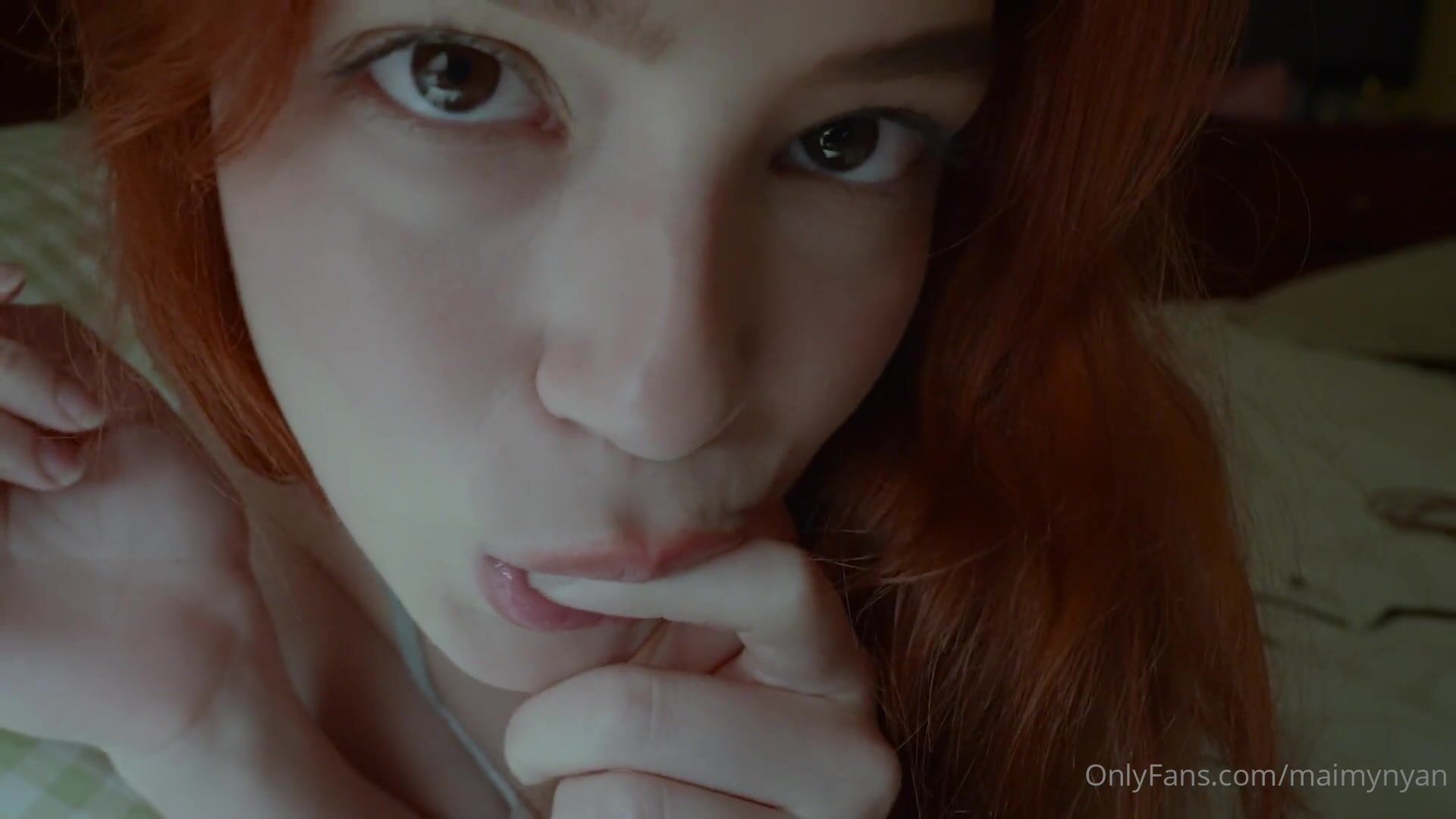 Redhead MaimyNYan teases in white lingerie showing her pussy playing with herself in this leaked OnlyFans video.